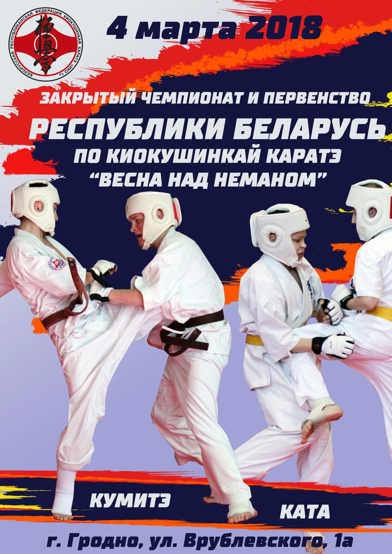 4 марта 2018 в г. Гродно состоится Закрытый Чемпионат и Первенство Республики Беларусь по Киокушинкай каратэ среди детей, юниоров, юниорок, взрослых "ВЕСНА НАД НЕМАНОМ".