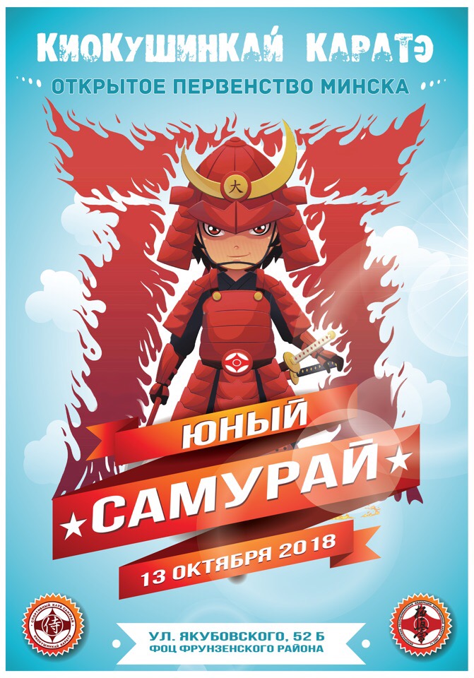 13 октября 2018 года состоится Открытое первенство г. Минска по Киокушинкай каратэ среди детей 4-11 лет "Юный самурай" .