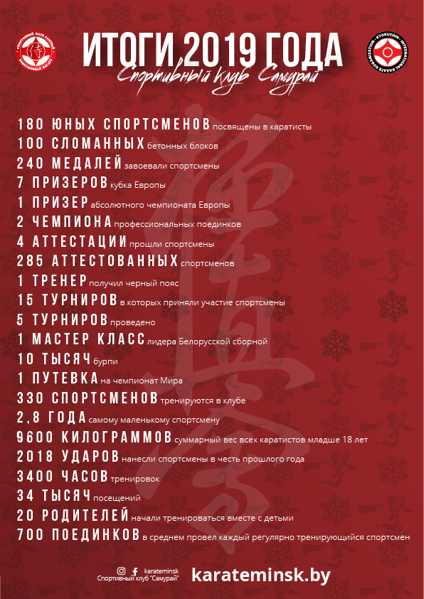 7 декабря 2019 года во Дворце спорта "Уручье" состоялся впервые в Беларуси 18 Кубок Европы по Киокушинкай каратэ (IKO)